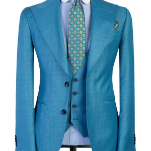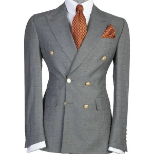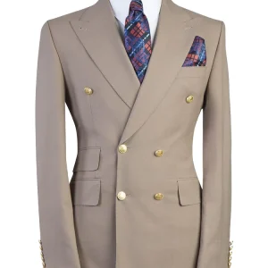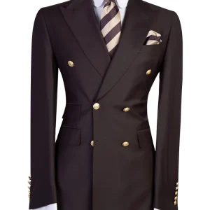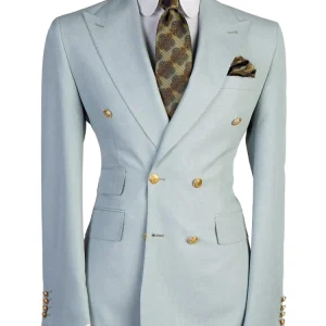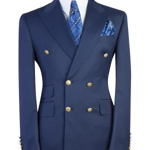 Stylish Navy Blue 2 Piece Double Breasted Peaked Lapel Men Suits