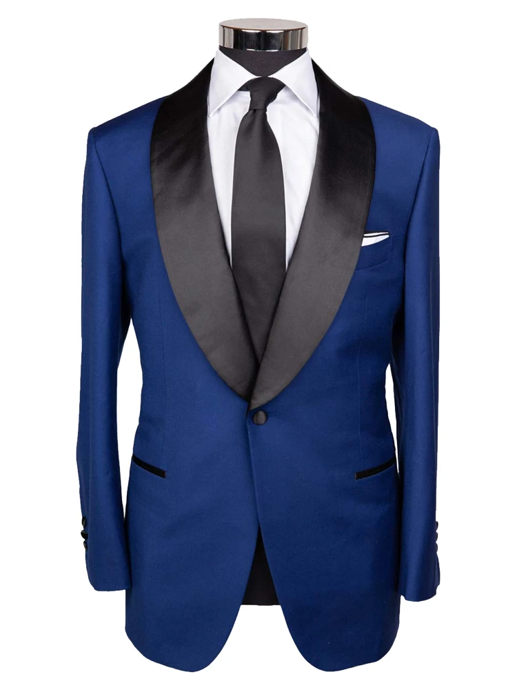 Gentle Black Satin Lapel Jacquard Pink Prom Suit Wedding