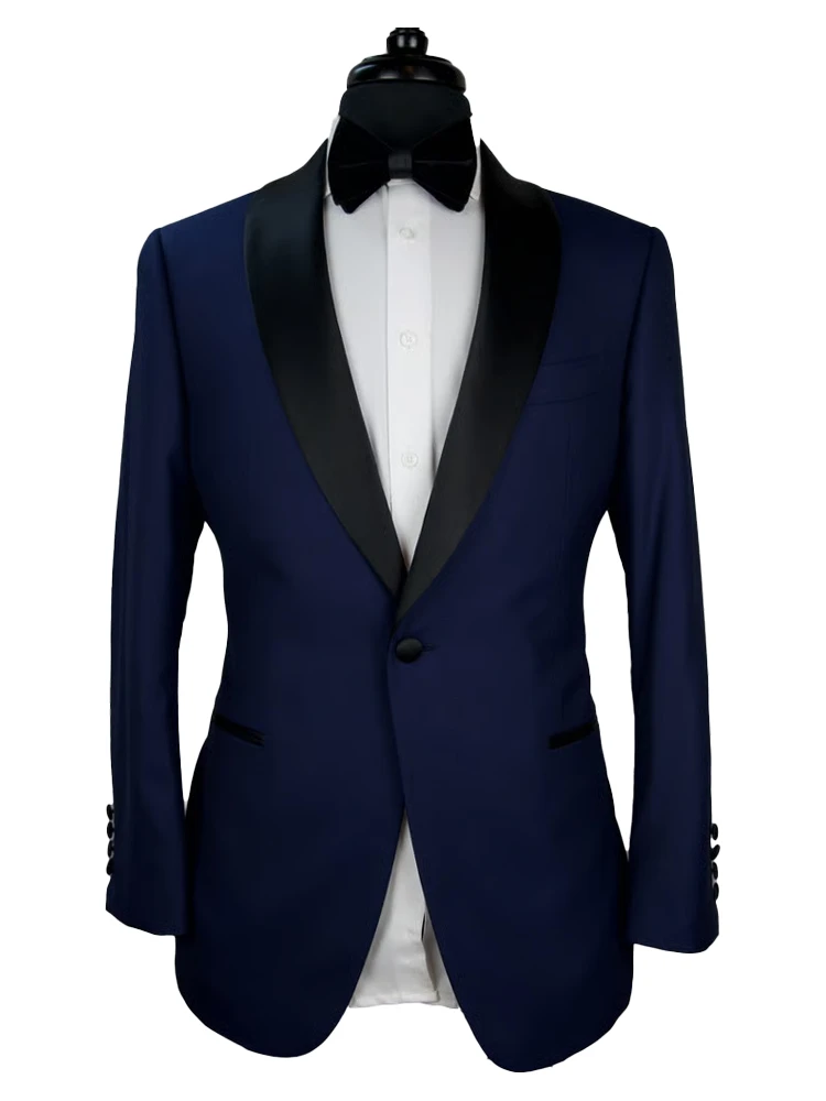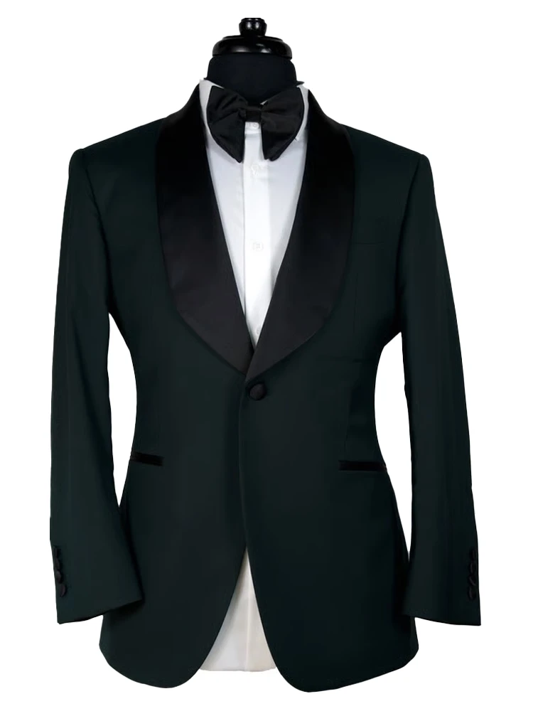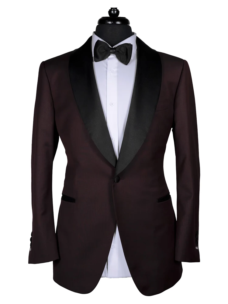 Gentle Black Satin Lapel Jacquard Pink Prom Suit Wedding