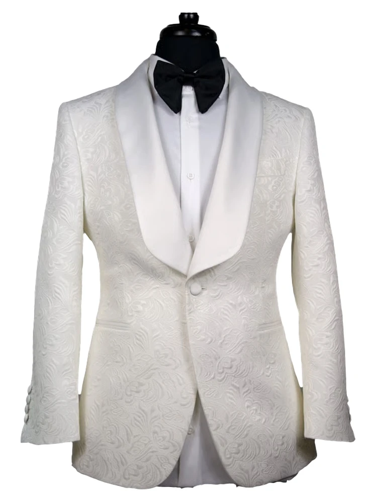 White Jacquard Shawl Lapel 3 Pieces Prom Men's Suits