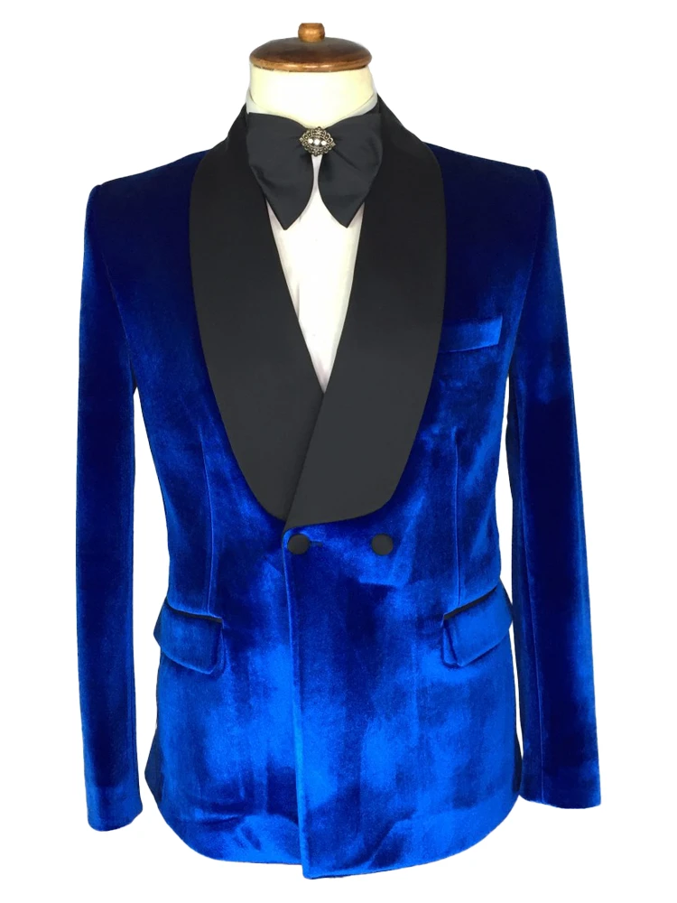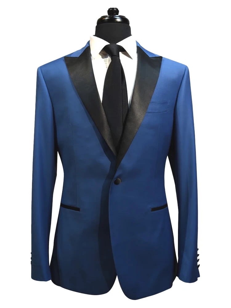Stylish Navy Blue 2 Piece Double Breasted Peaked Lapel Men Suits