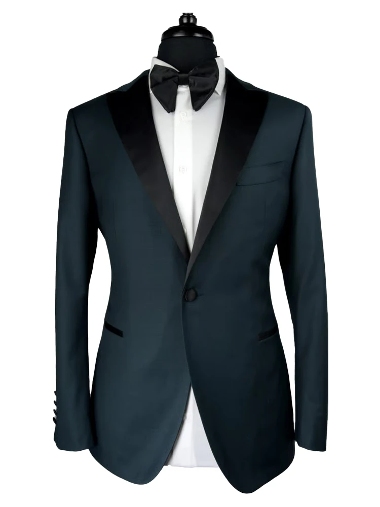 Gentle Black Satin Lapel Jacquard Pink Prom Suit Wedding