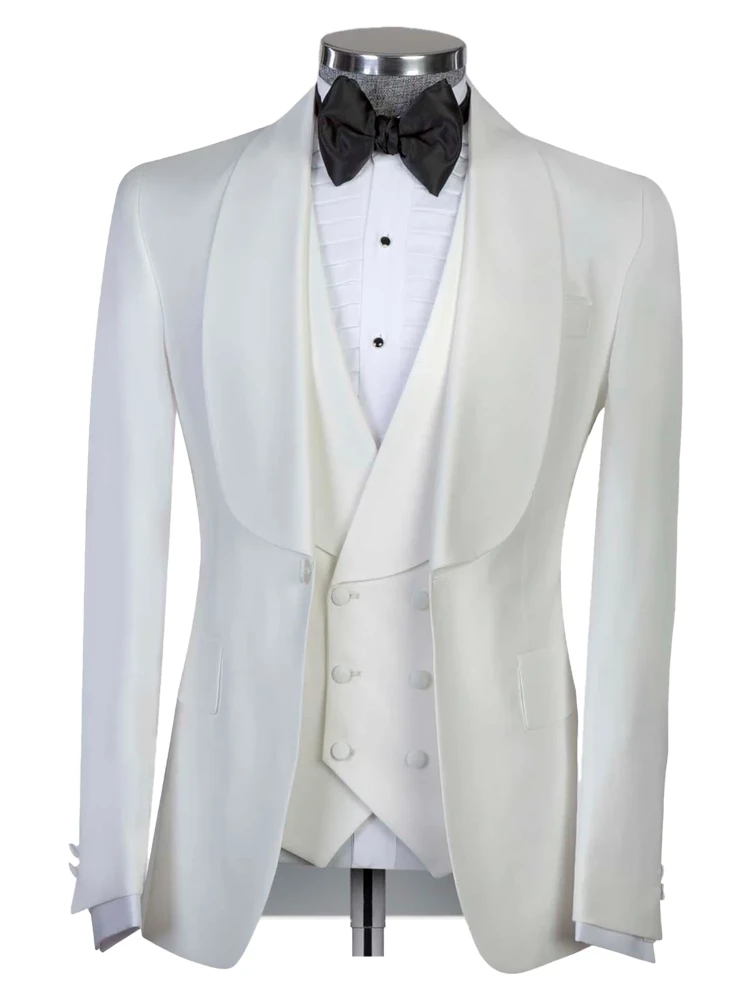 White Jacquard Shawl Lapel 3 Pieces Prom Men's Suits