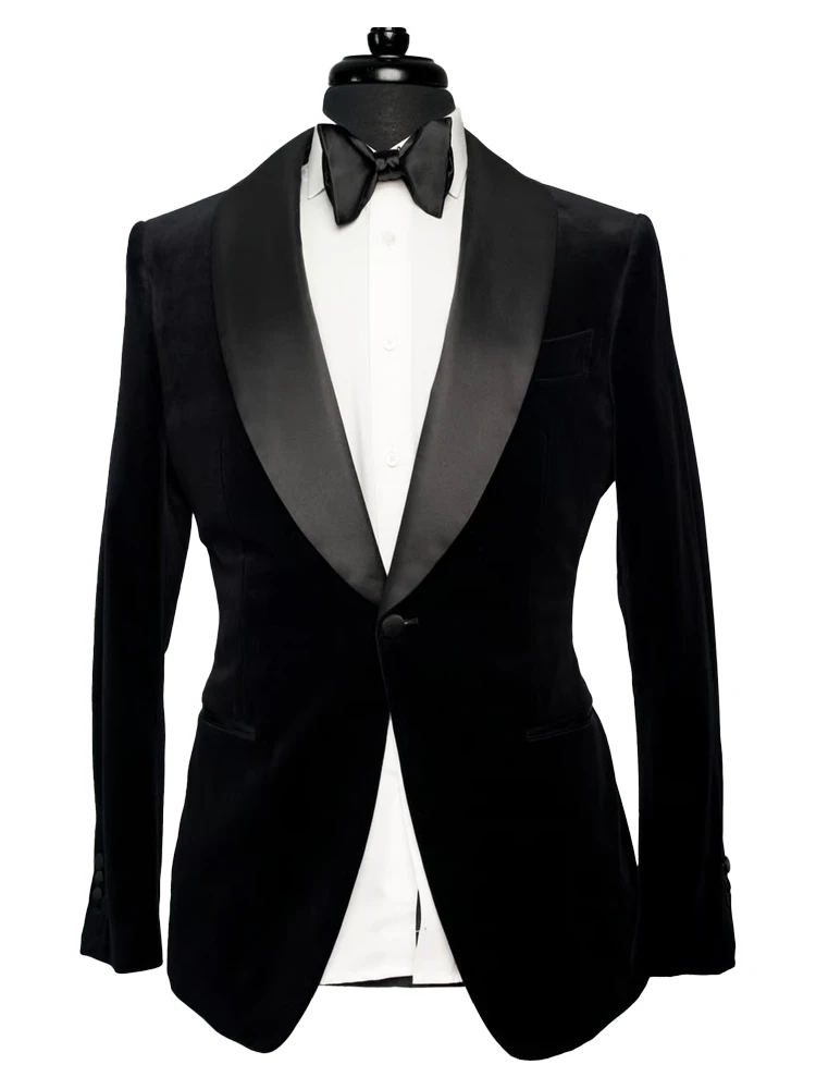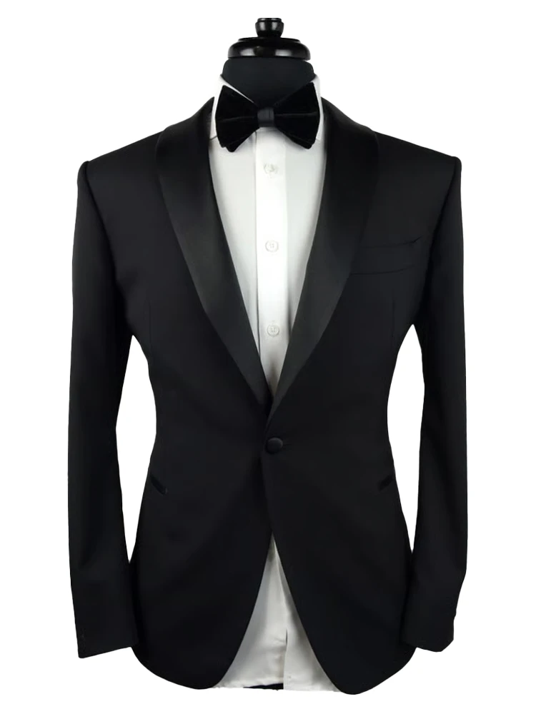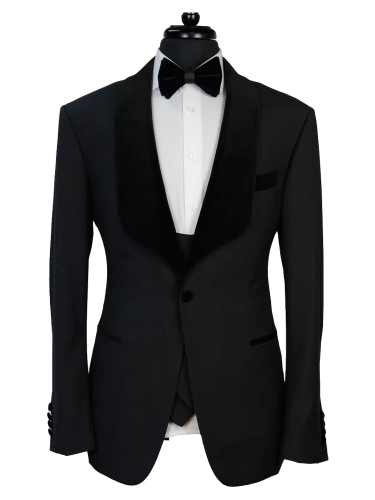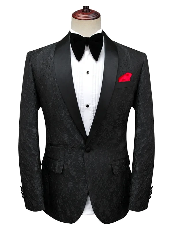 Black 2 Pieces Prom Suits Jacquard Tuxedo with One Button
