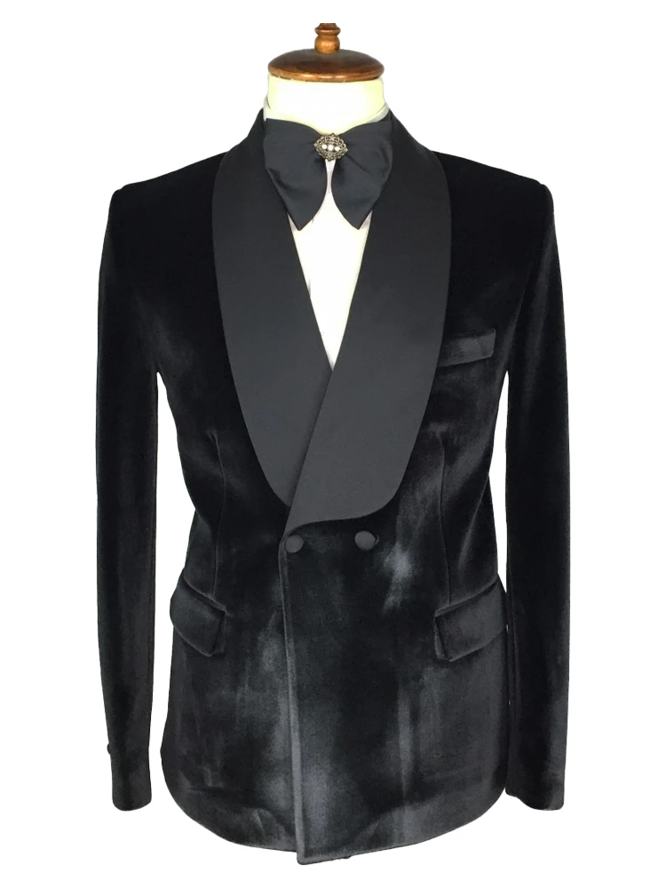 Gentle Black Satin Lapel Jacquard Pink Prom Suit Wedding