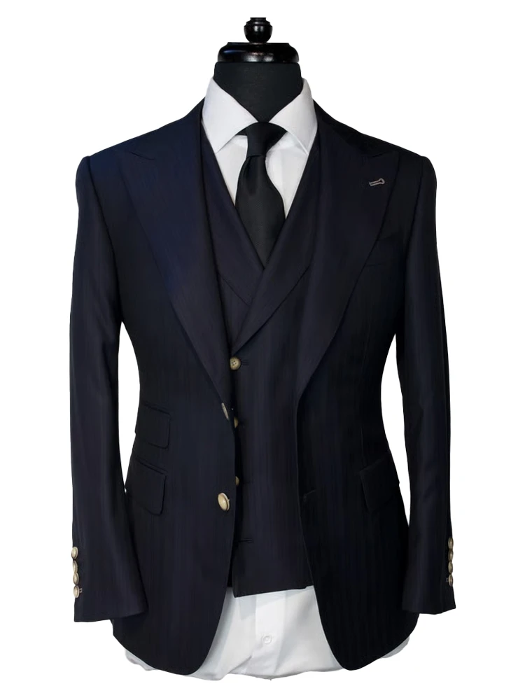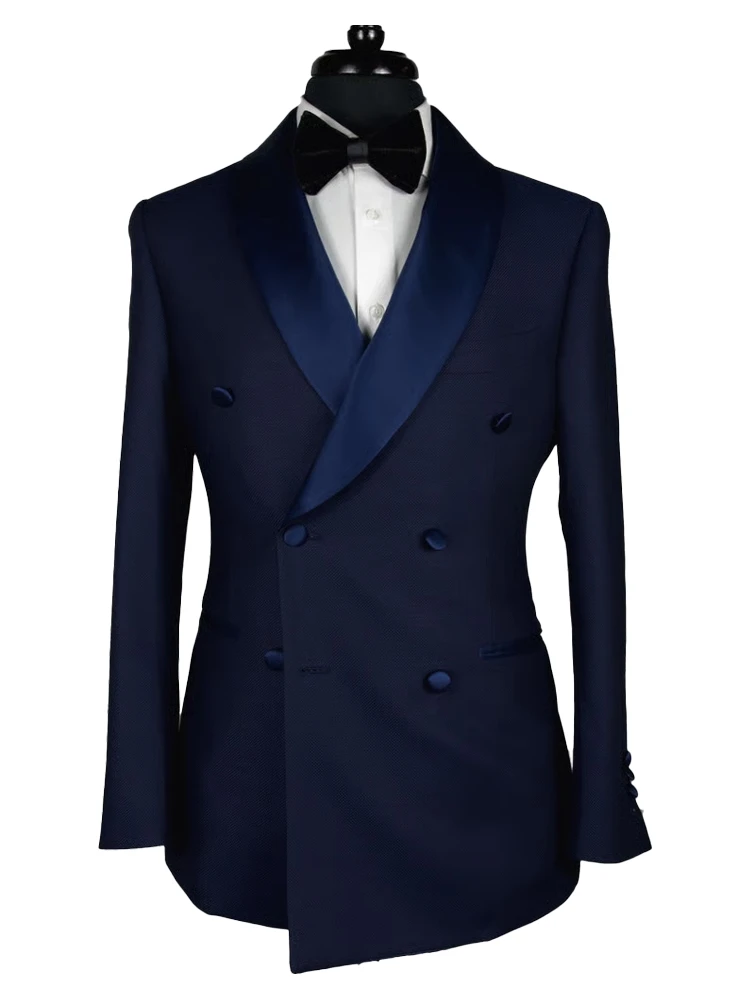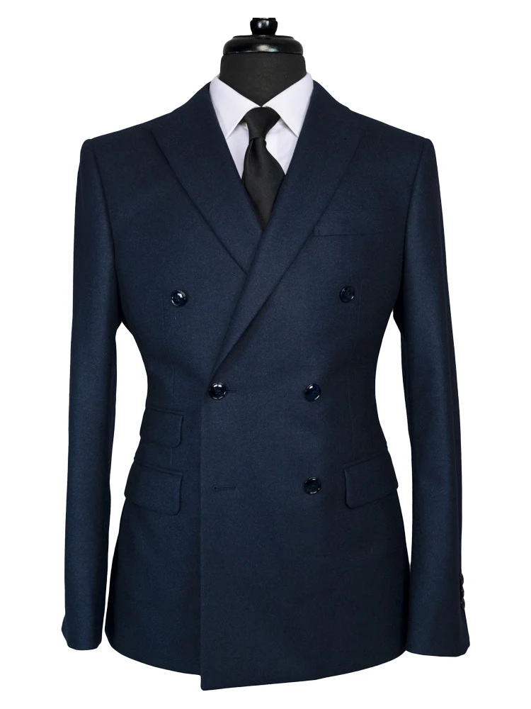 Stylish Navy Blue 2 Piece Double Breasted Peaked Lapel Men Suits
