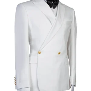+ Free Shipping| Product Name | 2 Piece Peak Lapel White Double Breasted Suit With Gold Button |