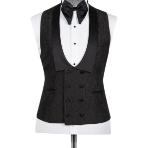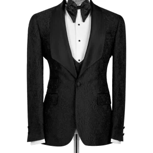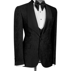 Black Jacquard Slim Fit Shawl Lapel Wedding Suits