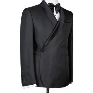 • Jacket: Shawl Lapel; Double Breasted One Button Closure; Welted Chest Pocket; 2 Straight Flap Front Pocket; Double Vents; Full Lining. Trouser: Flat front; One Button Extended Tab; 2 Jetted Hip Pockets; 2 Slant Front Pockets; Satin Waistband; Satin Side Stripe; Zip Closure.