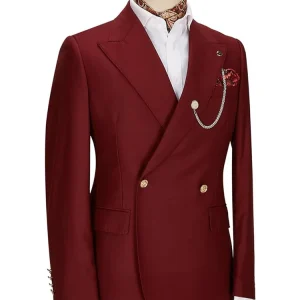 Charming Burgundy Peaked Lapel Double Breasted Prom Suits