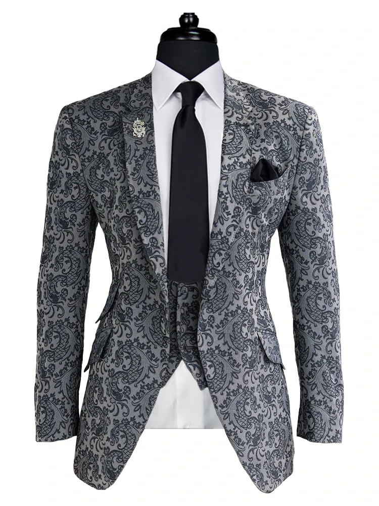 + Free Shipping| Product Name | Chic and Gorgeous Custom Made Three Piece Notch Lapel Single Breasted Grey Jacquard Wedding and Prom Tuxedo |