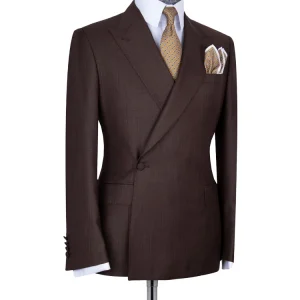 Classic 2 Piece Dark Brown Peak Lapel Side Button Business Suit