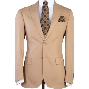 Classic 3 Piece Peak Lapel Khaki Suit