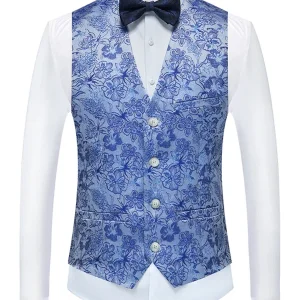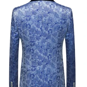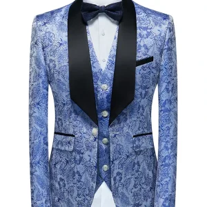 + Free Shipping| Product Name | Classic Blue Floral Jacquard Three Piece Tuxedos |
