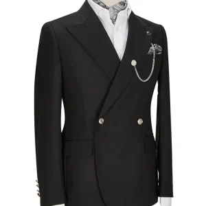 Classical Black Peaked Lapel Double Breasted Prom Suits