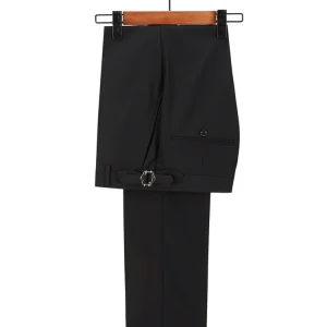 • Jacket: Double Breasted 2 Button Closure; Wide Peak Lapel; Welted Chest Pocket; 2 Flap Front Pockets; Double Vents; Full Lining; Trouser: Flat front; Belt Loops; 2 Jetted Hip Pockets; 2 Slant Front Pockets; Zip Closure; Side Adjuster.