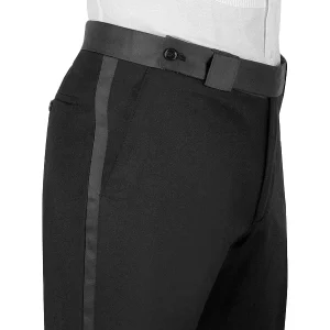 • Jacket: Wide Satin Shawl Lapel; Single Breasted One Button Closure; Welted Chest Pocket With Satin Trim; 2 Straight Flap Front Pocket; Flap Ticket Pocket; Double Vents; Full Lining. Trouser: Flat front; One Button Extended Tab; 2 Jetted Hip Pockets; 2 Slant Front Pockets; Satin Waistband; Satin Side Stripe; Zip Closure. Vest: Satin Shawl Lapel; Double Breasted 8 Button Closure; 2 Satin Besom Front Pockets .
