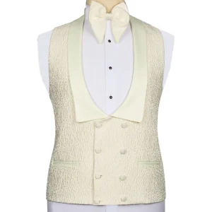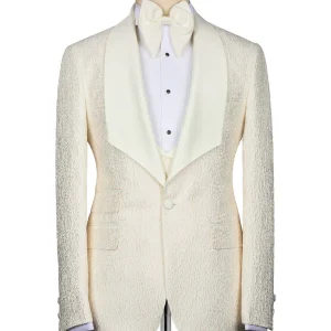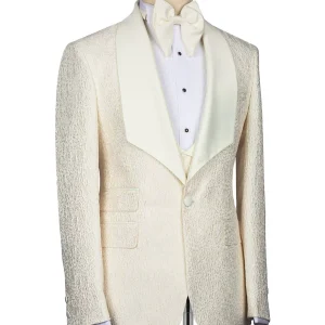 Cream Jacquard Slim Fit Shawl Lapel Wedding Suits