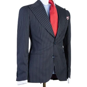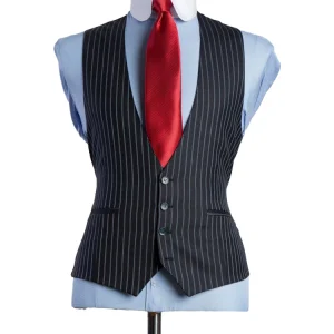 + Free Shipping| Product Name | Dark Navy Striped Fashion Three Piece Men Suit |