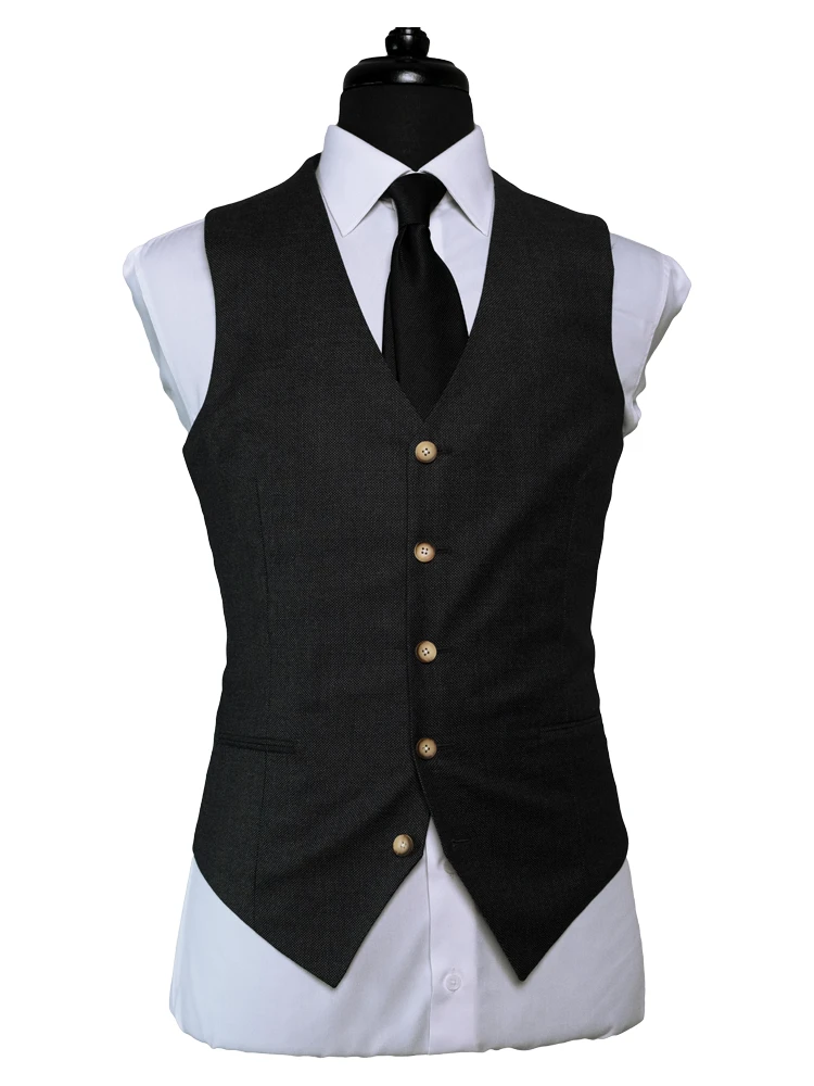Elegant and Gorgeous Custom Made Classic Casual Three Piece Peak Lapel Double Breasted Charcoal Birdseye Wedding Business Men Suit