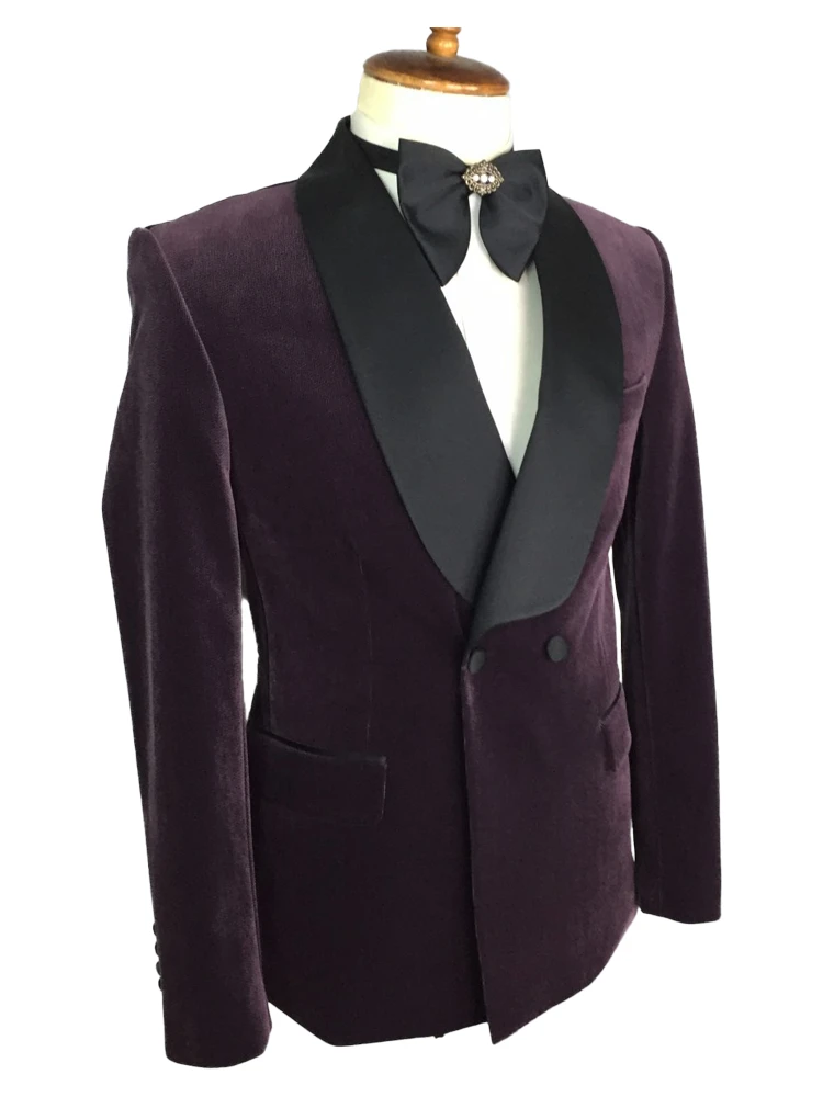 Elegant and Gorgeous Cutom Two Piece Shawl Lapel Double Breasted Plum Purple Wedding and Prom Men Tuxedo