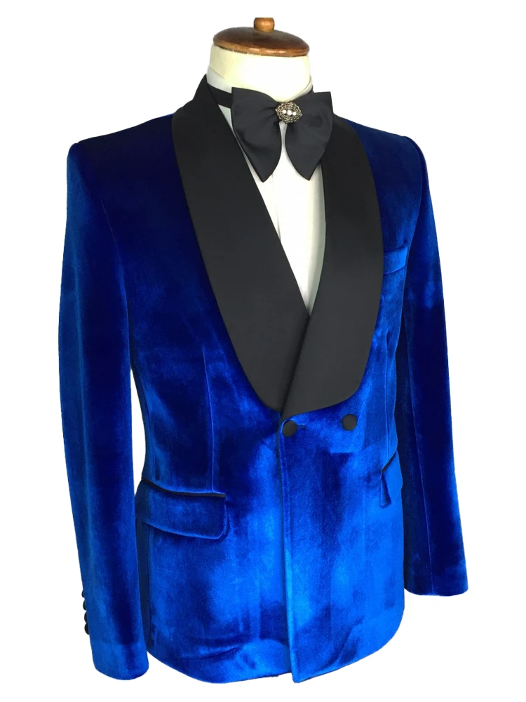 + Free ShippingProduct Name | Elegant and Gorgeous Cutom Two Piece Shawl Lapel Double Breasted Royal BlueVelvet Wedding and Prom Men Tuxedo |