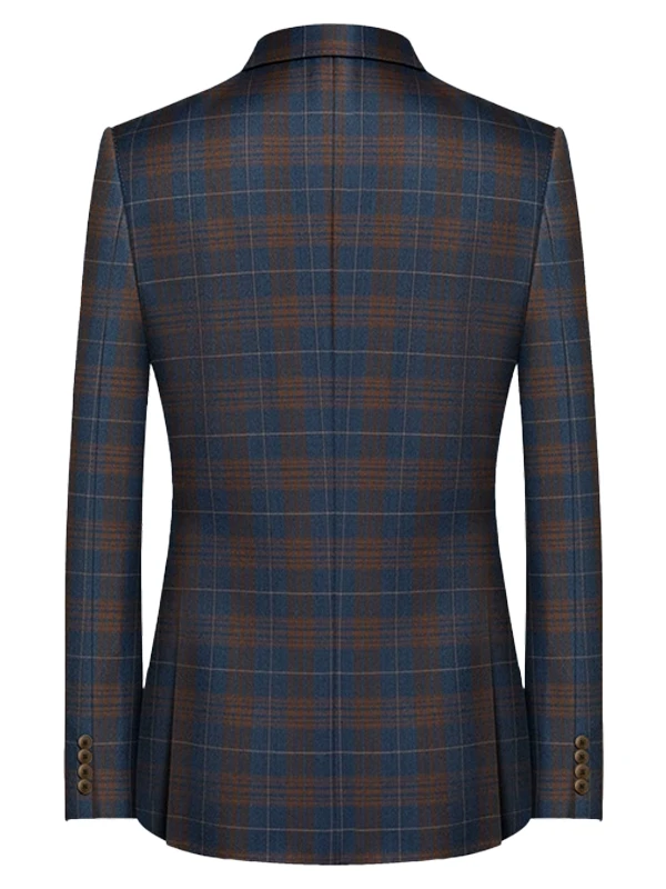 Elegant and Stylish Classic Casual Custom Made Two Piece Notch Lapel Single Breasted Blue and Gold Check Business and Prom Suit