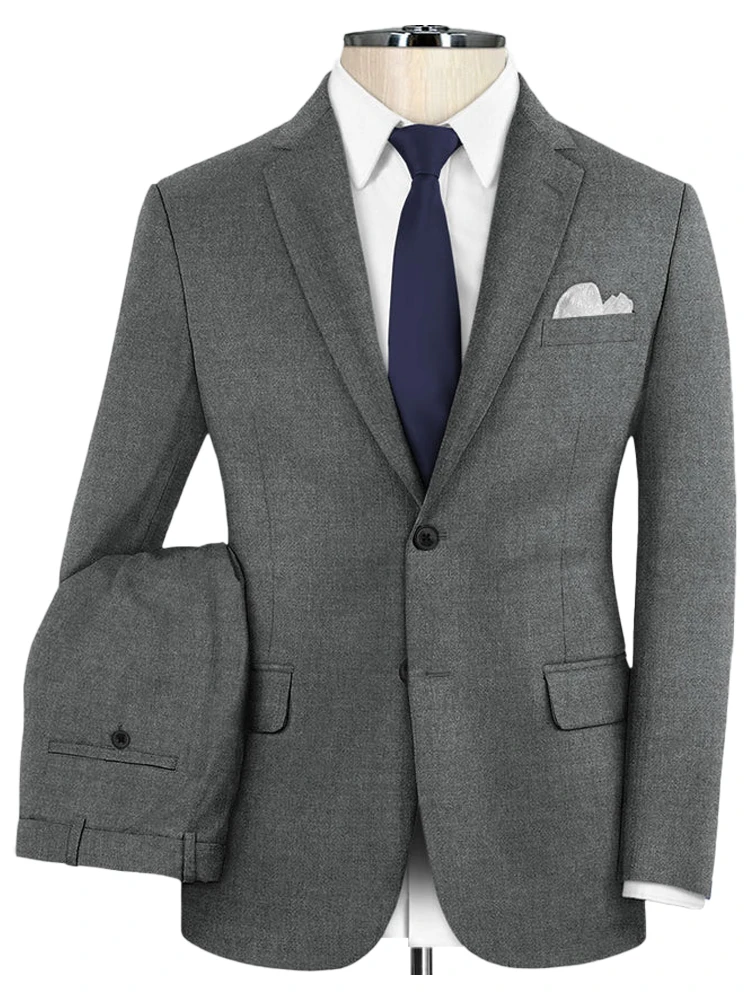 Elegant and Stylish Custom Made Classic Casual Two Piece Notch Lapel Single Breasted Grey Flannel Business Men Suit