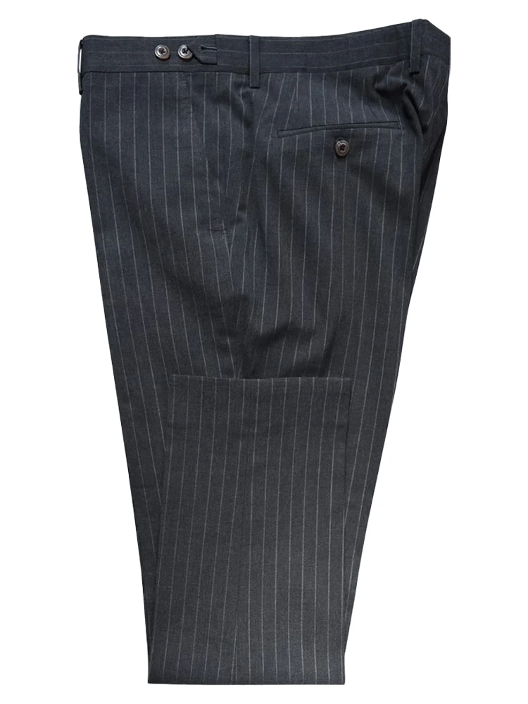 • One of our favorite pinstripe suits. Its weight will allow you to rock this in colder temperatures while keeping you cool. If you’re looking for a charcoal pinstripe suit, this is a great choice. We love this suit with peak lapels. It just makes it a power suit.