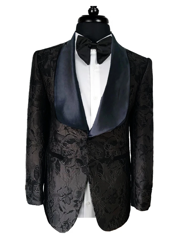 + Free Shipping| Product Name | Elegant and Stylish Custom Made Two Piece Shawl Lapel Single Breasted Black Floral Jacquard Wedding and Prom Men Tuxedo |