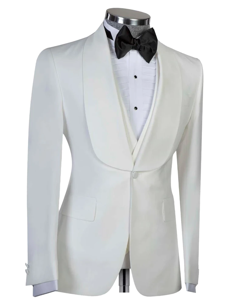 + Free ShippingProduct Name | Elegant and Stylish Custom Three Piece Shawl Lapel Single Breasted All White Wedding Groom And Prom Men Tuxedos |
