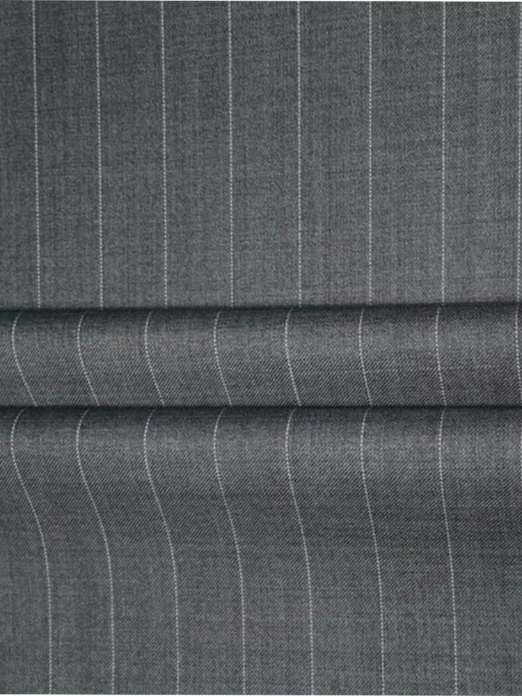 • This gray striped worsted wool fabric contains approximately 70% wool. With its fine texture, comfortable hand feel, and excellent drape, advanced weaving techniques have intricately crafted an elegant style into the fabric, allowing the materials to blend naturally and seamlessly. It offers a superior tactile experience and remarkable wrinkle resistance. The simple yet sophisticated design exudes nobility and a commanding presence, while its intellectually refined and aesthetically pleasing color palette makes it utterly delightful.