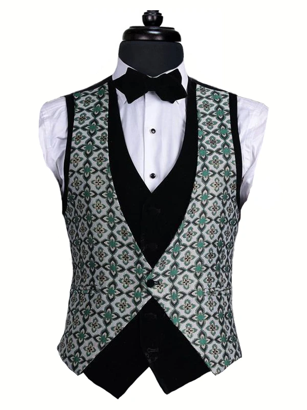 + Free Shipping| Product Name | Fancy Custom Made Three Piece Shawl Lapel Single Breasted Green Star Jacquard Wedding and Prom Tuxedo |