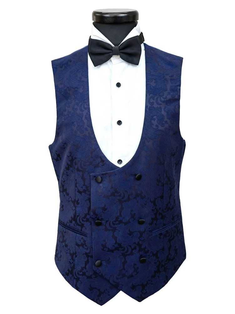+ Free ShippingProduct Name | Fashion and Elegant Custom Made Three Piece Shawl Lapel Single Breasted Navy Blue Jacquard Floral Wedding Prom Tuxedo |
