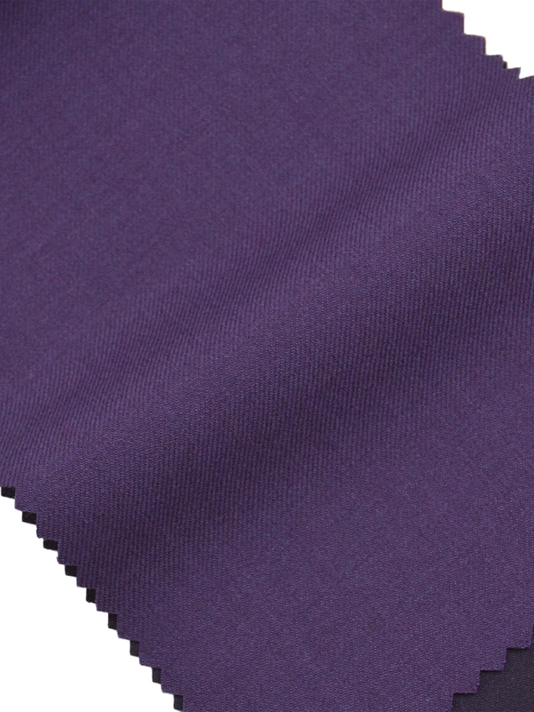 • Experience the supreme tactility of high-count worsted wool, woven into a delicate serged twill. This two-piece suit boasts a graceful drape and a soft sheen, with sleek tailoring in a sophisticated purple hue that defines understated elegance and temperate grace.