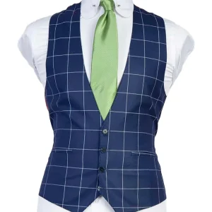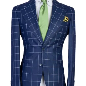 Fashion and Stylish Custom Made Classic Casual Three Piece Peak Lapel Single Breasted Blue Windowpane Wedding Prom and Business Men suits