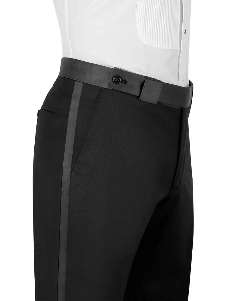 • Jacket: Satin Wide Peak Lapel; Single Breasted One Button Closure; 2 Satin Jetted Pockets; 1 Welt Chest Pocket; Double Vents; Full Lining. Pants: Belt Loops; Side Adjusters; Zipper Fly; 2 Slant Front Pockets; 2 Jetted Back Pockets.