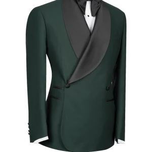 Fashion Custom Made Two Piece Shawl Lapel Double Breasted Dark Green Business Wedding and Prom Men Suit