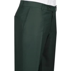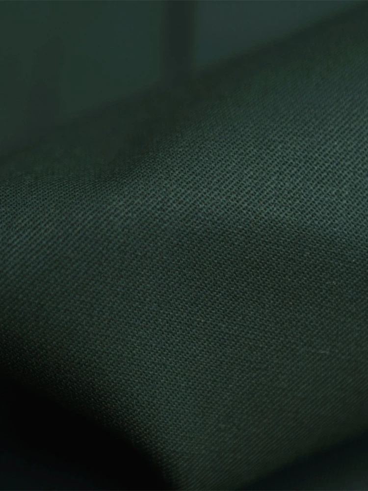 • This dark green worsted wool men’s suit presents a smooth wool surface with a natural and soft luster. The fabric is crisp yet resilient, offering both structure and elasticity. Meticulously tailored, it drapes elegantly while maintaining exceptional shape retention. Ideal for formal occasions, it combines timeless sophistication with contemporary comfort, ensuring a sharp and distinguished silhouette.