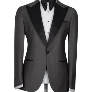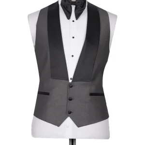 • Jacket: Satin Peak Lapel;2 Satin Jetted Pockets;Single One Button Closure; Double vent;Welted Chest Pocket;Waistcoat: Satin Shawl Lapel; 3 Buttons Closure;Satin Jetted Pocket; Trouser: Black Flat front; 2 Jetted Back Pockets;2 Slant Front Pockets; Satin Waistband;Satin Side Stripe; One Button Extended;Zip Closure