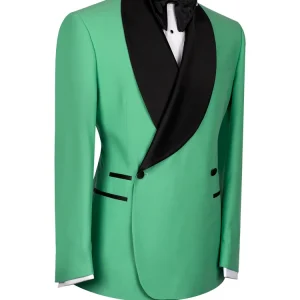 + Free Shipping| Product Name | Fashion Green One Button Satin Black Collar Men Two Piece Suits |