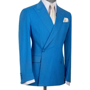 + Free Shipping| Product Name | Ocean Blue Striped Peaked Lapel Men Suit for Business |