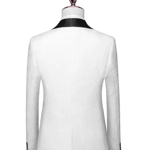Gentle White Satin Lapel Jacquard Pink Prom Suit Wedding