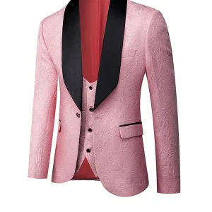 • Fabric: This light pink men’s suit set is crafted with exquisite European and American tailoring techniques. Made from a premium polyester-cotton blend fabric, it offers both a structured silhouette and a comfortable wearing experience. The design essence lies in the unique embossed butterfly pattern, which infuses the classic shape with delicate, three-dimensional artistic flair. The soft yet assertive light pink hue breaks the traditional color boundaries of menswear, reflecting the modern gentleman’s poised elegance and exceptional taste.