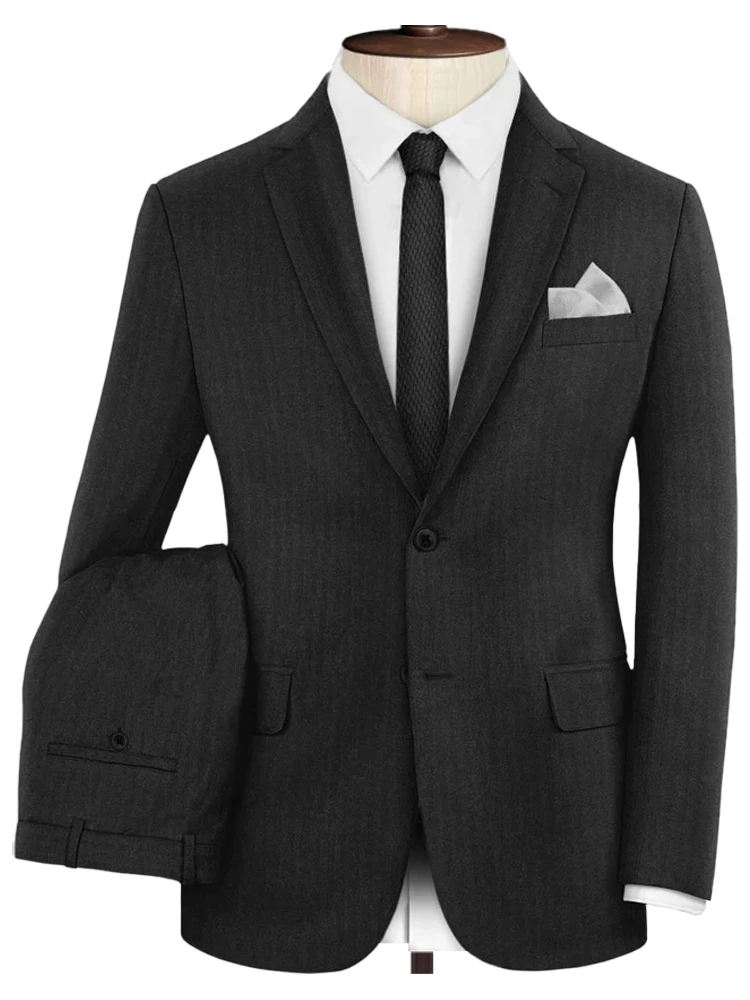 Gorgeous and Stylish Custom Classic Casual Two Piece Notch Lapel Single Breasted Charcoal Grey Herringbone Business and Wedding Men Suit