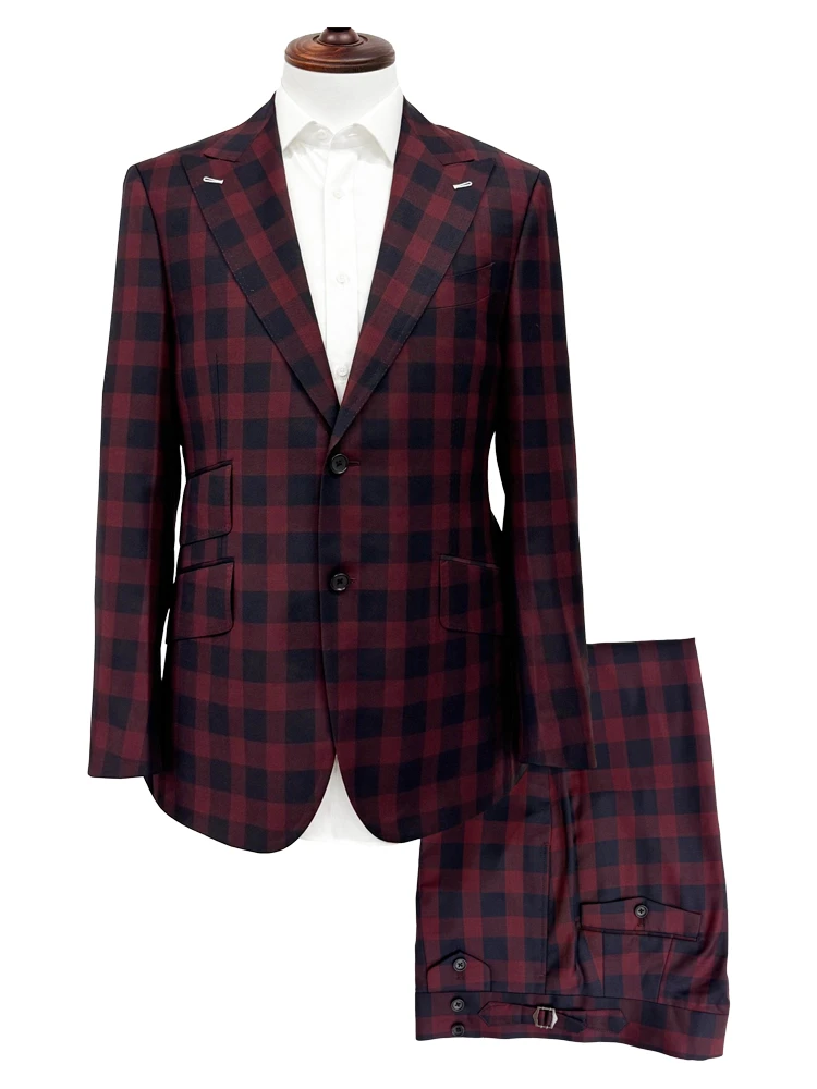 + Free ShippingProduct Name | Gorgeous and Stylish Custom Classic Two Piece Peak Lapel Single Breasted Burgundy and Black Block Plaid Business and Prom Suit |