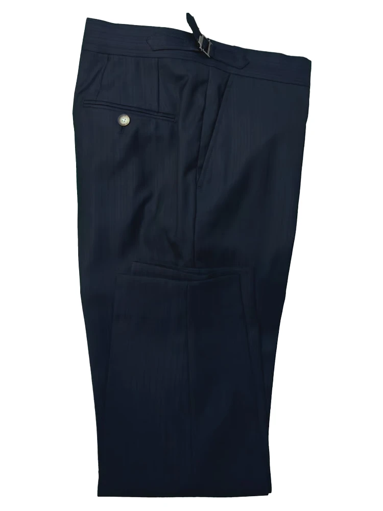 • This gorgeous midnight blue fabric has all the properties of a winner. We love this fabric’s drape and flow – it just gives an elegant and classy look to anyone rocking it. The subtle herringbone texture and its striped edge is shows the complexity in producing such a beautiful weave. This is your perfect power suit.
