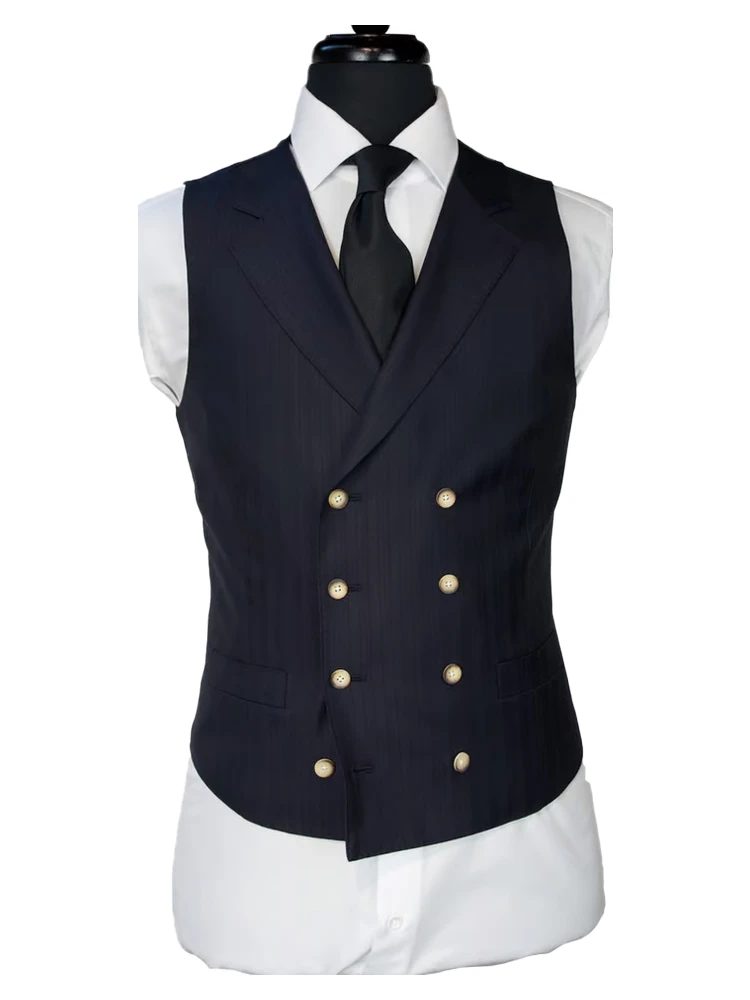 • Jacket: Peak Lapel; Left Lapel Button Hole; Single Breasted 2 Button Closure; 2 Flap Pockets; 1 Ticket Pocket; 1 Welted Chest Pocket; Double Vents; Full Lining. Pants: Same Fabric with Jacket; Flat Front(Pleat can selected); Belt Loops; 2 Slanted Front Pockets; 2 Jetted Back Pockets; Zipper Fly; Side Ajuster. Vest: Notch Lapel; Double Breasted 8 Button Closure; 2 Besom Front Pockets.