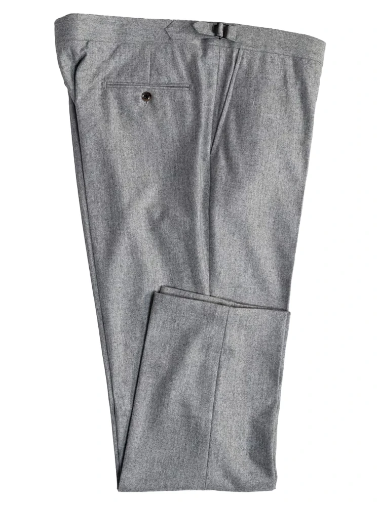 • The Light Grey Flannel Wool Suit is ideal for fall and winter, and comfortable year-round in climate-controlled environments.