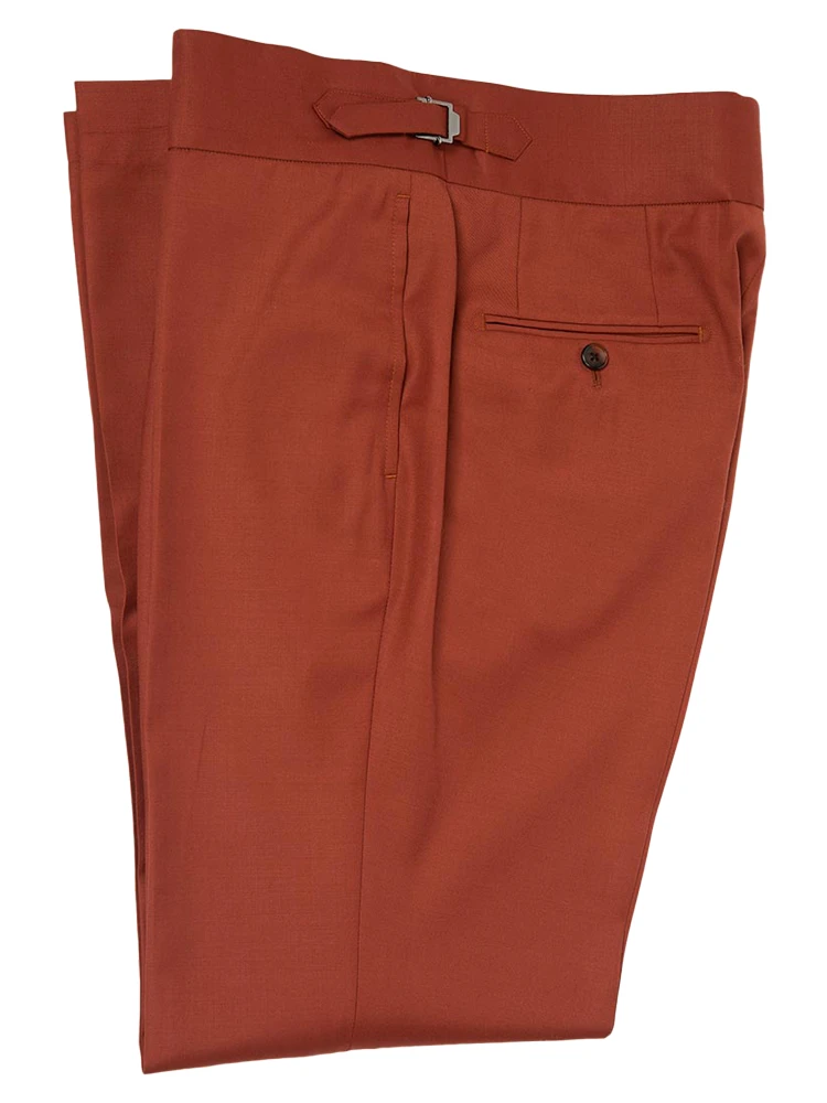 • A striking shade of orange-toned russet red, The Todd is a suit for a man that wants to stand out: the kind of man that never has to tap a glass twice to propose a toast. The color of excitement and fearlessness, our peak-lapeled homage to sanguine sartorial looks is designed to turn heads.